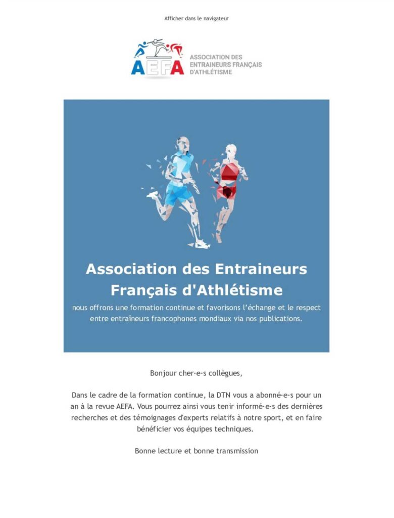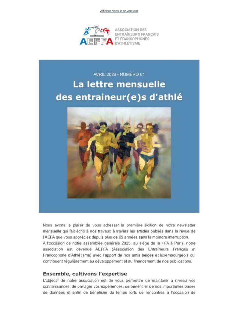 Consultez l’ensemble des newsletters passées pour rester informé sur les actualités de l’association, les résultats des compétitions, les dossiers techniques, les points réglementaires et les grands événements du monde de l’athlétisme.